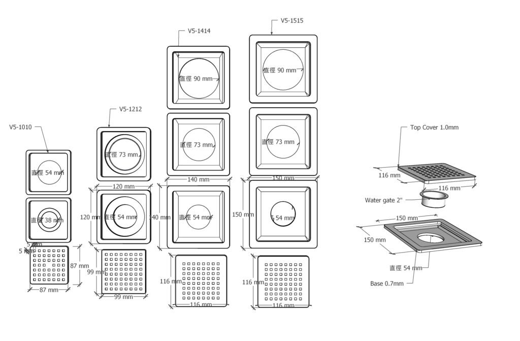 Water gate / Odor Preventor available fit in 60mm / 75mm / 90mm